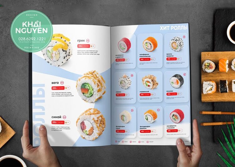 Bạn không biết nên sử dụng màu sắc như thế nào cho phù hợp với menu của mình??? Hãy đến ngay với Khải Nguyên, tại đây bạn sẽ được tư vấn và hỗ trợ thiết kế thực đơn sao cho phù hợp nhất dành cho mình.