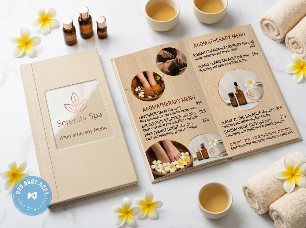 Nếu ngân sách hạn chế nhưng vẫn muốn menu trông sang, da PU dày kết hợp cửa sổ mica là điểm cân bằng tốt nhất. Bạn có thể xem thêm các mẫu in thực đơn khác để tham khảo thêm hướng lựa chọn phù hợp.